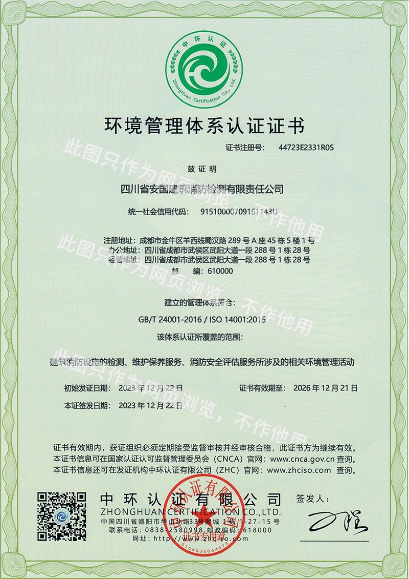 四川省安國建筑消防檢測有限責任公司,成立于1998年,經四川省公安消防總隊批準,工商部門注冊的獨立法人單位。 公司具有建筑消防設施檢測、電氣防火安全檢測、維修、保養及技術咨詢一級資質的中介技術服務機構,獲得CMA計量認證。主要業務范圍是:接受建設單位或有關單位委托,承擔新建、改建、擴建建筑自動消防設施技術檢測、電氣防火安全檢測、以及承接建筑消防設施維護保養,對已交付使用的建設消防設施的運行情況進行運行檢測,開展建筑消防設施的消防安全技術咨詢。公司設辦公室、總工辦、財務部、檢測部、維保部等職能機構,擁有一